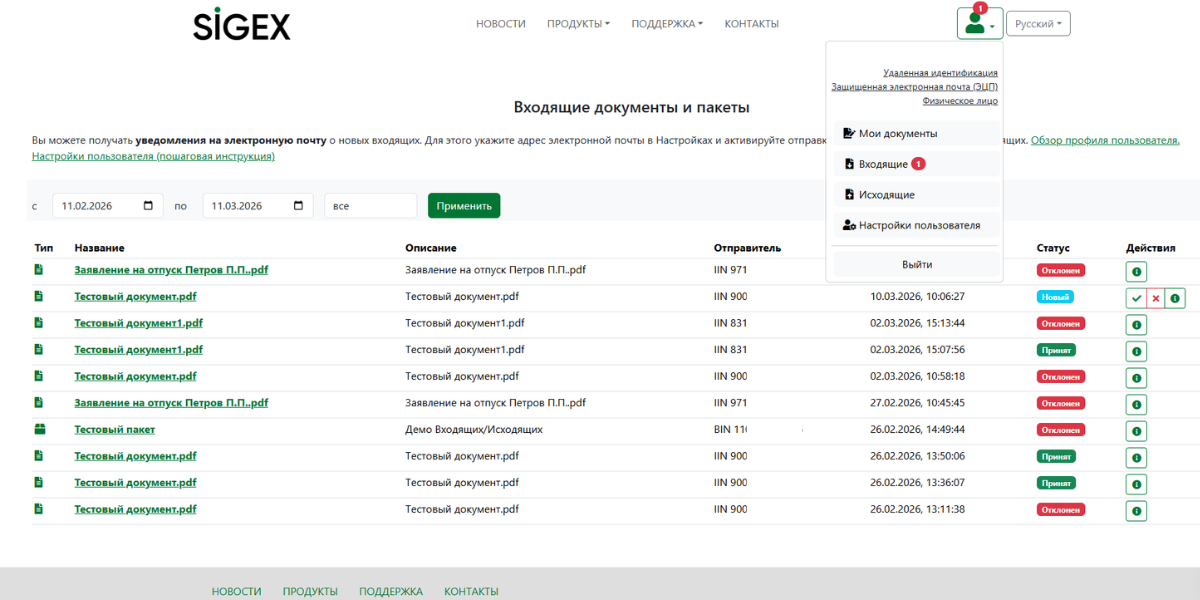 Настоящая инструкция описывает функциональные возможности SIGEX по настройке уведомлений и обзору Входящих и Исходящих документов.