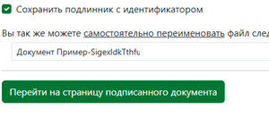Кликните на кнопку для того, чтобы перейти на страницу подписанного документа. Подлинник документ с идентификатором будет автоматически сохранен на компьютер.